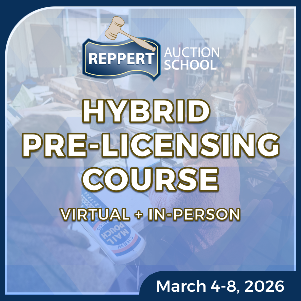 The Reppert Hybrid Course. The only hybrid auctioneering education where you can receive your auctioneer license.